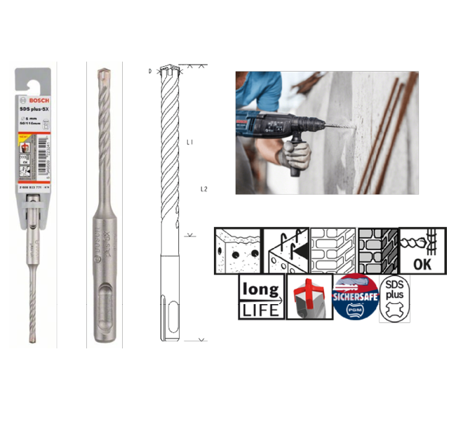 ● SDS plus-5X Delme Ucu, donatılı betonda yüksek verimlilikle delme performansı sunar.