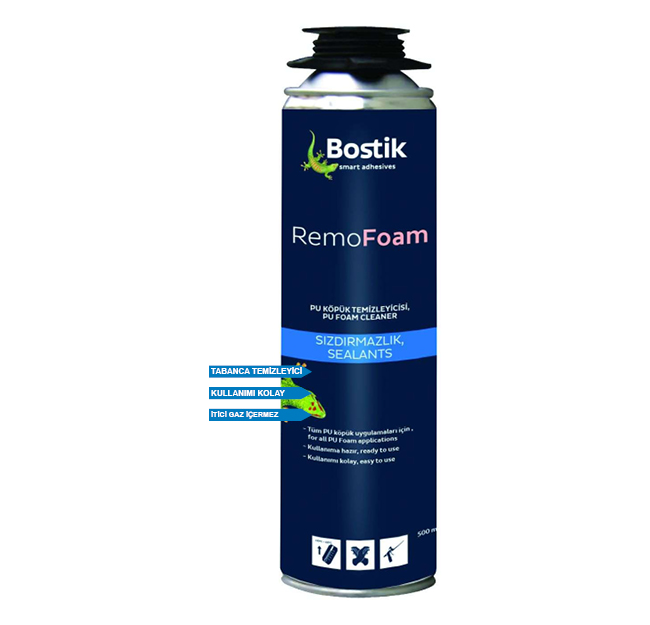 Bostik RemoFoam, poliüretan köpük ve köpük tabancası temizleyicisidir. |