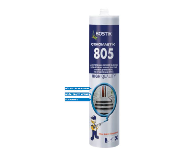 Çekomastik 805 Mermer Silikonu, polisiloksan esaslı, içte ve dışta kullanılabilen nötral karakterde bir silikondur. |