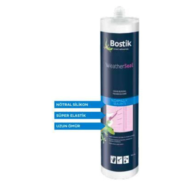 Bostik WeatherSeal, alkoksi esaslı, içte ve dışta, özellikle dış cephelerin sızdırmazlık işleri için formülize edilmiş çok amaçlı kullanıma uygun, esnek nötral karakterde bir dış cephe silikonudur. |