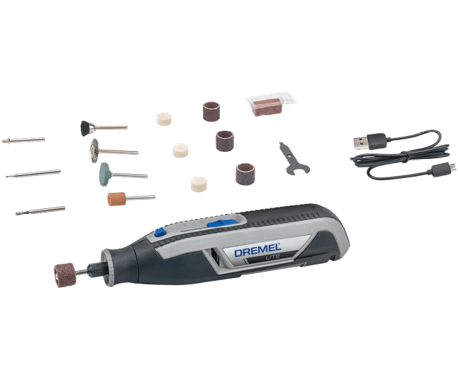 ● Akülü ve USB üzerinden şarj edilebilen Dremel Lite ile bir sonraki kendin yap projeniz için her zaman ve her yerde hazır olursunuz.