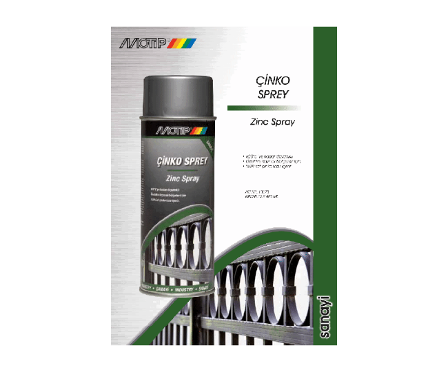 Motip Çinko Spreyi çinko parçacıklarıyla zenginleştirilmiş olup üzerinde uygulama yapılmaya müsait kalıcı bir boyadır. Kaportalar, kaplar, makineler, metal mahfazalar, kulplar, çiftler vs. gibi bütün demir metciler için mükemmel bir korozyon koruyucusudur. Doğrudan galvonize veya üzerinde uyglama olmayan çelik üzerine uygulanabilir. Yüksek iletkenliği sayesinde özellikle de metal yüzeyleri terlemeye karşı korur. Galvanize yüzeylerde renk uyumu sağlamak veya yüzeyi iyileştirmek için Motip Alüminyum-Çinko Spreyini kullanınız |