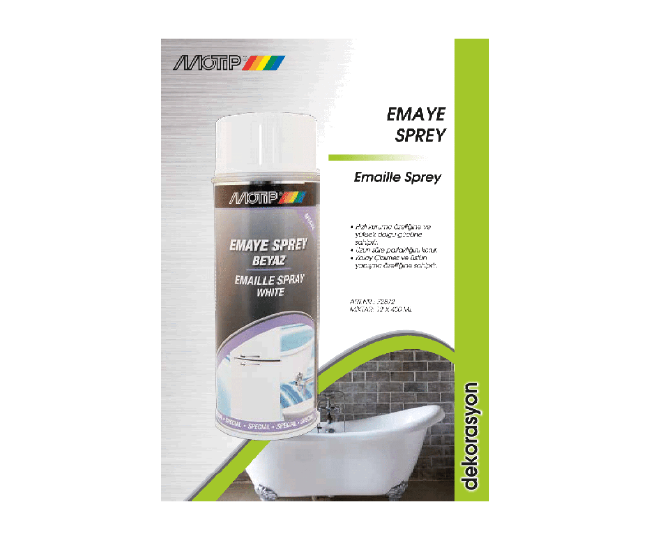 Emaye yüzeylerde (banyo, küvet, duş, buzdolabı) ve sırlı yüzeylerin süslenmesi ve onarımına yönelik yüksek kaliteli boya |