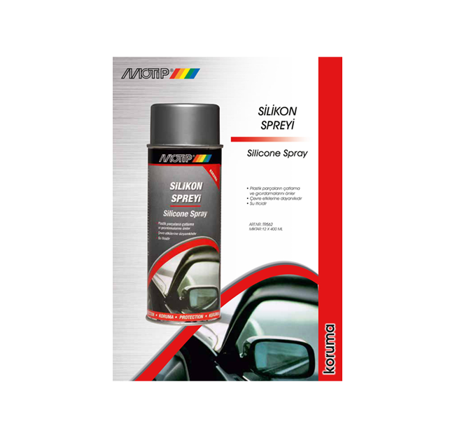 Motip Silikon Spreyi bisikletlerde, otomobillerde nem, kir ve buzlanmaya karşı plastik ve kauçuk parçaları yağlamak ve korumak için kullanılır. Kaliteli silikon spreyi, kauçuğu yalıtır ve plastik parçaların kırılmasına ve takırdamasına engel olur. |