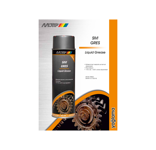 Motip Sıvı Gres, metal mekanik parçaları yağlamak için yapışkan sprey |